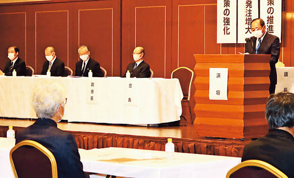 中小企業団体県大会が20日、富山市の富山第一ホテルであり、新型コロナウイルスの影響を受けた中小企業や…
