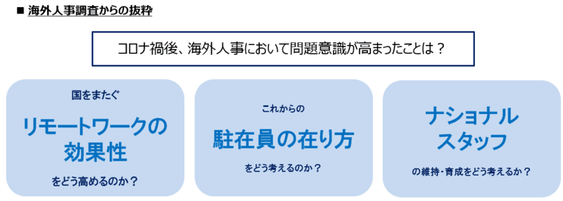 重要な論点は「国を超えたリモートワーク」、「海外駐在員の在り方再考」、そして「ナショナルスタッフの維…