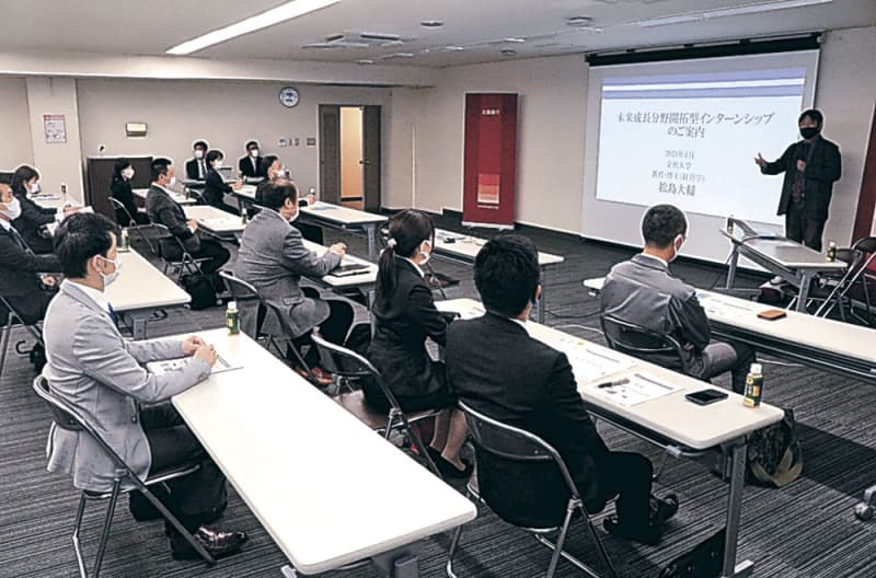 北陸銀行は30日、金大が学生を同行の取引先企業に派遣する取り組みについて、金沢市の金沢支店で説明会を…