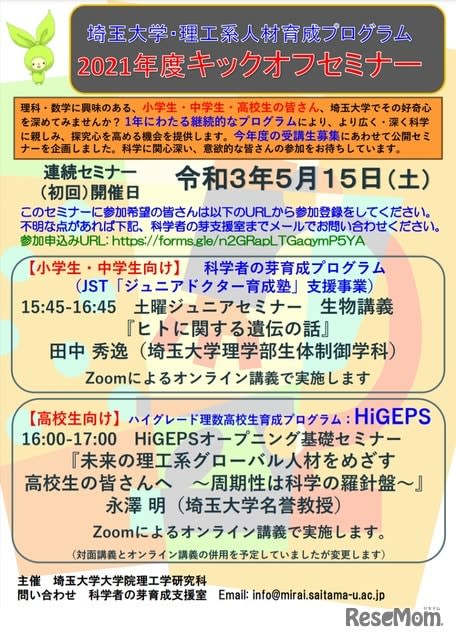 埼玉大学大学院理工学研究科は2021年5月15日、小学生・中学生・高校生を対象とした理工系人材育成プ…