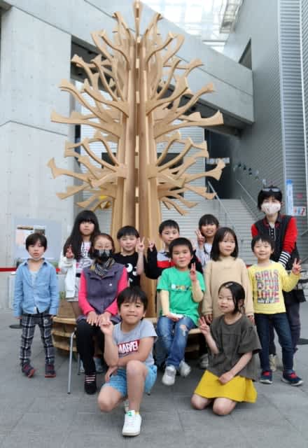 【中津】木製建具・家具製造の九州ダイト(中津市相原)が、オリジナルの木製ツリー形オブジェを市歴史博物…