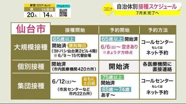 6月2日、宮城県内の在宅の高齢者のワクチン接種スケジュールを自治体ごとに確認します。 仙台市です。大…