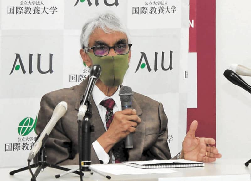 国際教養大(秋田市)の理事長兼学長に1日就任したモンテ・カセム氏(73)が9日、秋田県庁で記者会見し…