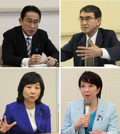 29日投開票の自民党総裁選に立候補している河野太郎行政改革担当相、岸田文雄前政調会長、高市早苗前総務…