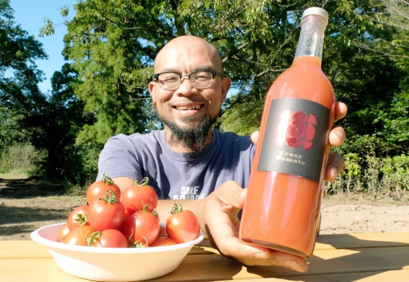 完熟朝採れ「越のルビー」のトマトジュース インドネシア出身の農家男性が商品化