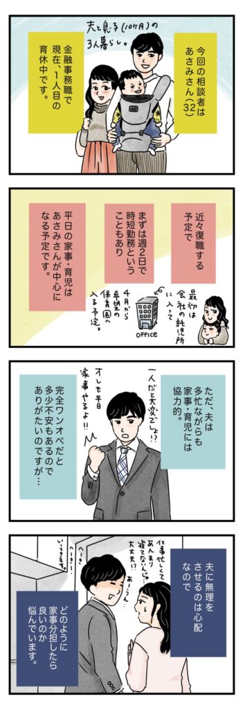 ●今回のモヤモヤ「多忙な夫とどのように家事・育児分担したらいいのかわからない」 連載「ワーママのモヤ…