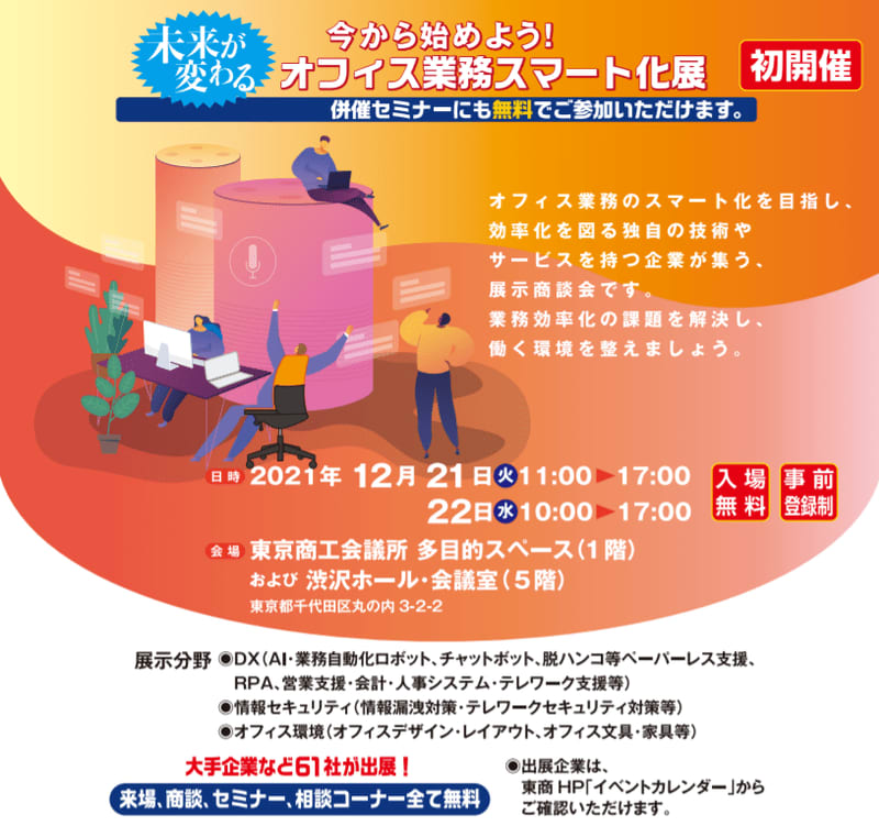 DX・情報セキュリティ・オフィス環境関連の業務効率化サービスを持つ61社が出展! 2021年12月7…