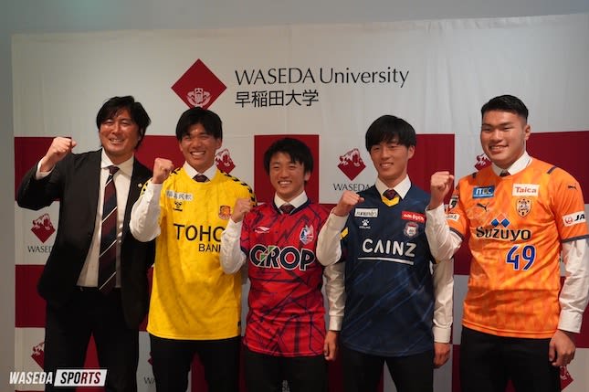 22日、早稲田スポーツミュージアムにて、Jリーグへの加入内定を決めた4人の選手が合同記者会見を行った…