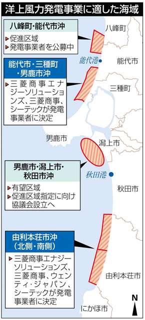 経済産業、国土交通両省は24日、洋上風力発電の整備促進区域である「能代市、三種町および男鹿市沖」での…