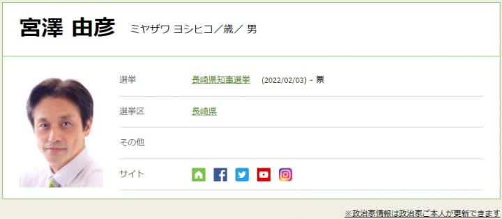 任期満了にともなう長崎県知事選(2月3日告示、2月20日投開票)に、無所属で新人の宮沢由彦氏(54)…