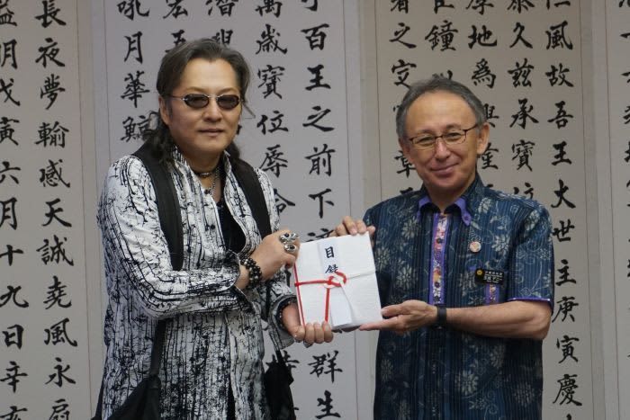 歌手でアーティストの石井竜也さんが8日、沖縄県庁を訪れ、首里城再建に役立ててほしいとファンから寄せら…