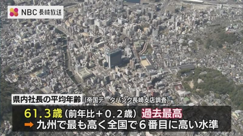 長崎県内企業の社長の平均年齢は昨年末時点で61.3歳で、過去最高となり、九州で最も高くなりました。 …