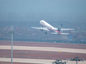 湖北省の鄂州花湖空港の上空を飛ぶ順豊航空(SFエアラインズ)の貨物専用機。(3月19日撮影、鄂州=新... (さらに…)…