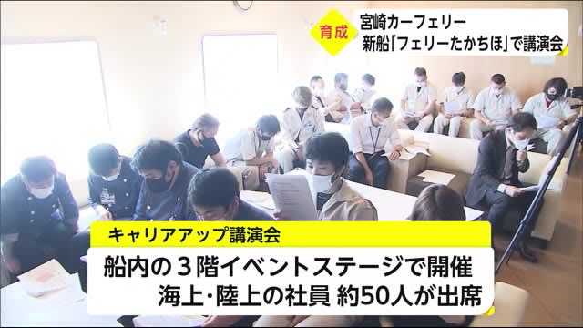 宮崎カーフェリーの人材育成の取り組みです。新たに就航した「フェリーたかちほ」の船内で、社員を対象にし…