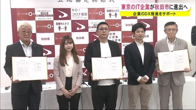東京に本社を置くIT企業が秋田市で事業展開することになり、18日、秋田県庁で協定の締結式が行われた。…