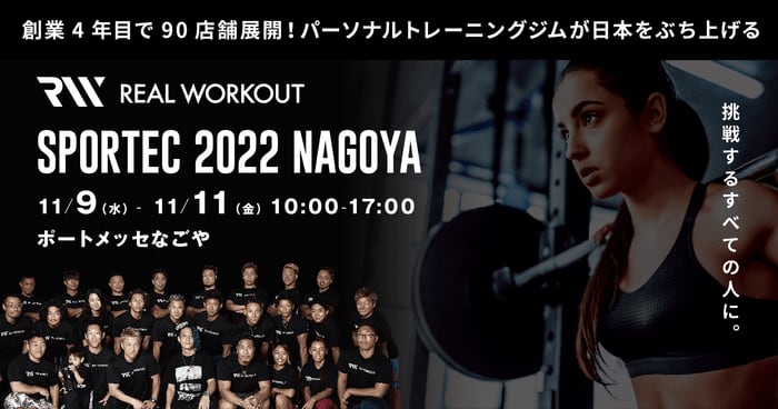 中部地区最大のスポーツ・フィットネス・健康産業総合展「SPORTEC 2022 名古屋」にパーソナルジム「REAL WORKOUT」が出展。公開トークショーも開催!