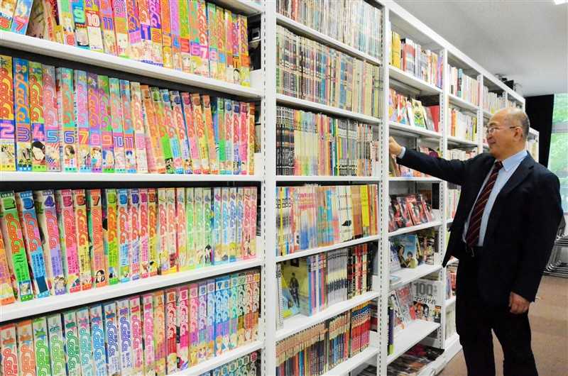広さ118平方メートルのフロアに少年誌や少女誌のバックナンバーや単行本がぎっしりと詰まった書棚が並ぶ…