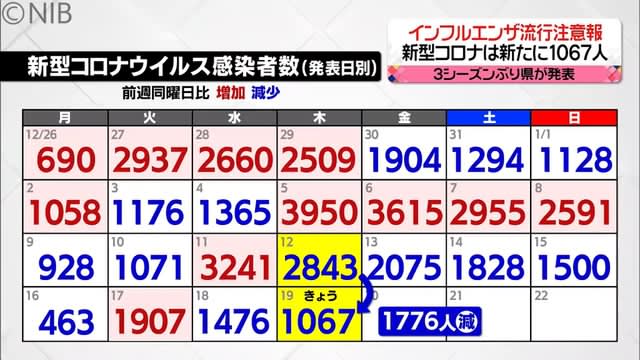 【長崎】新型コロナウイルス感染続く中・・・インフルエンザ流行注意報3シーズンぶり