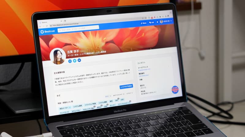 社内メンバーの業務内容、スキルや経験、経歴や異動履歴がまとまっている社内用SNSツール「Beatru…