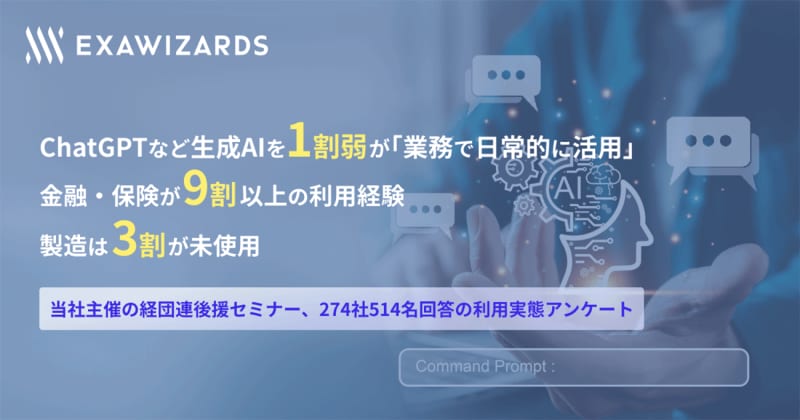 エクサウィザーズは、生成AIに関するセミナーの参加者を対象に利用実態のアンケートを実施した。 アンケ…