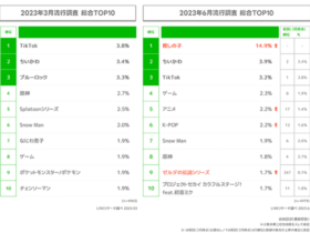 LINEリサーチは、全国の15~24歳の男女を対象にした「若年流行調査」の2023年上半期(3月、6... (さらに…)…