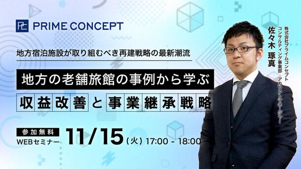 金融機関職員に向け、宿泊業界の収益改善と事業継承戦略を解説 WEBセミナーを11月15日に開催
