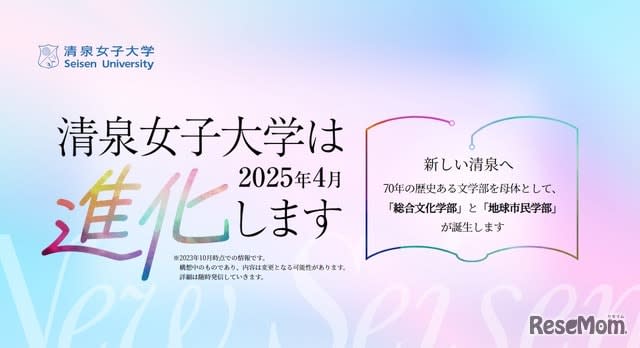 清泉女子大学は2023年10月14日、2025年4月に「総合文化学部」および「地球市民学部」を開設予…