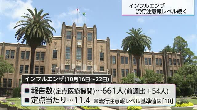 インフルエンザの感染が広がっています。10月22日までの1週間に報告されたインフルエンザの感染者数は…