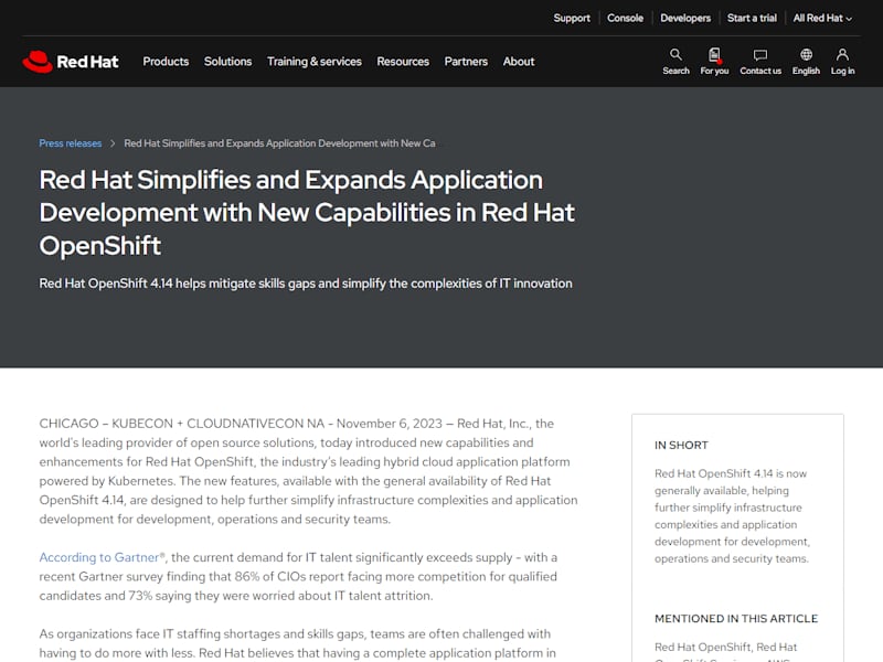 米Red Hatは現地時間11月6日、エンタープライズ向けコンテナプラットフォームの最新版となる「R…