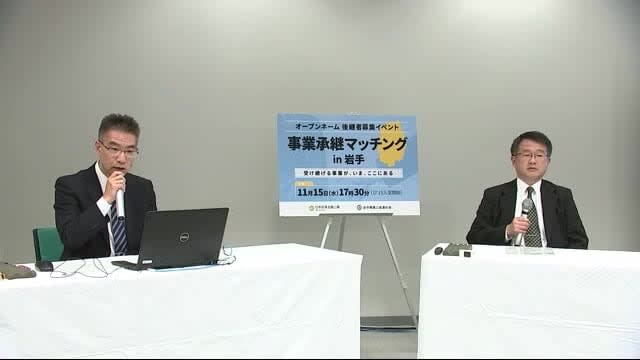後継ぎがいない岩手県内の事業者が、店名などを明らかにした上で後継者を募集するイベントが、11月15日…