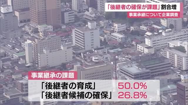県内の企業を対象とした意識調査によると、「後継者の確保」を課題に挙げる企業の割合が、3年前の調査に比…