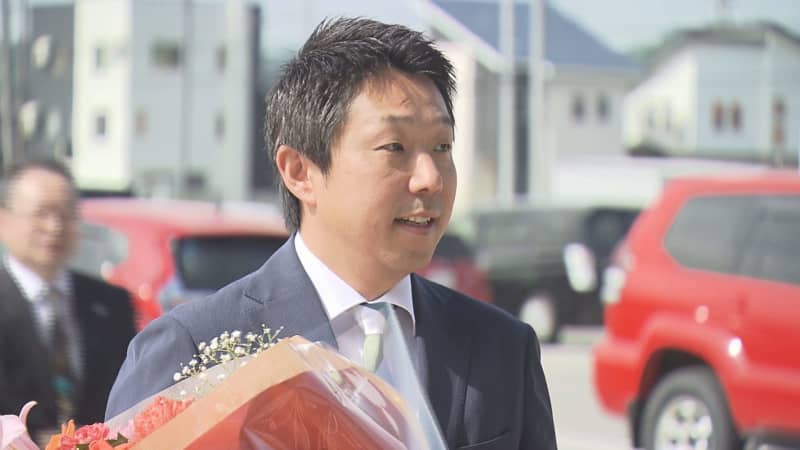 4月16日の山形県川西町の町長選挙で初当選した茂木晶・新町長が30日朝、初登庁し「川西町をさらに住み…