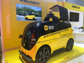 中国国際サービス貿易交易会の会場で、生活関連サービス大手の美団が展示した自動配送車。(2023年9月... (さらに…)… -