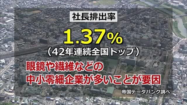 都道府県別の社長輩出率は、福井県が42年連続で全国トップとなりました。 調査は、帝国データバンクが全…