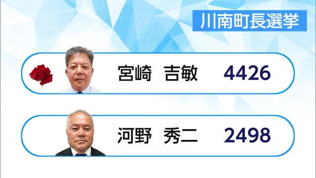 新人2人の一騎打ちとなった宮崎県川南町長選挙は11日投票が行われ、宮崎吉敏氏が初当選を果たしました。…