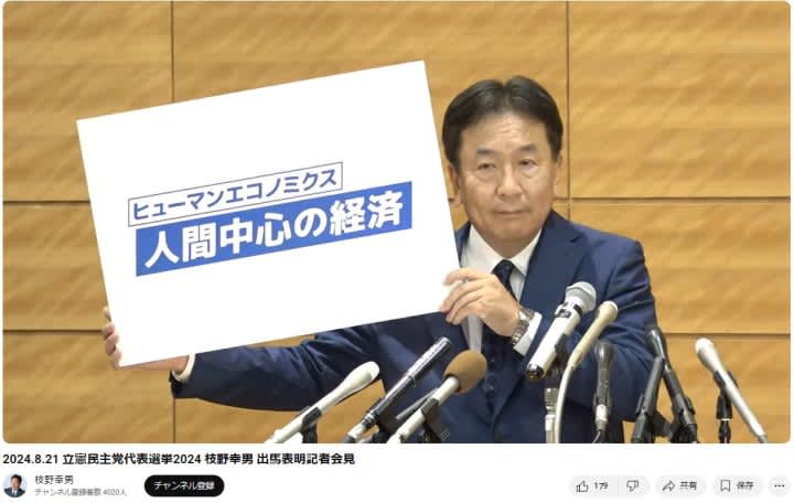 9月7日告示・23日投票の立憲民主党代表選に、元代表の枝野幸男(えだの・ゆきお)衆院議員が出馬を表明…