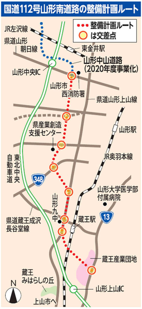 山形市の国道112号「山形南道路」(延長約9キロ)の整備に向け、国土交通省山形河川国道事務所と県は2…