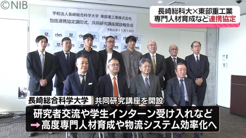 長崎総合科学大学と東部重工業が、人材育成などに取り組むための包括連携協定を締結しました。 締結式には…