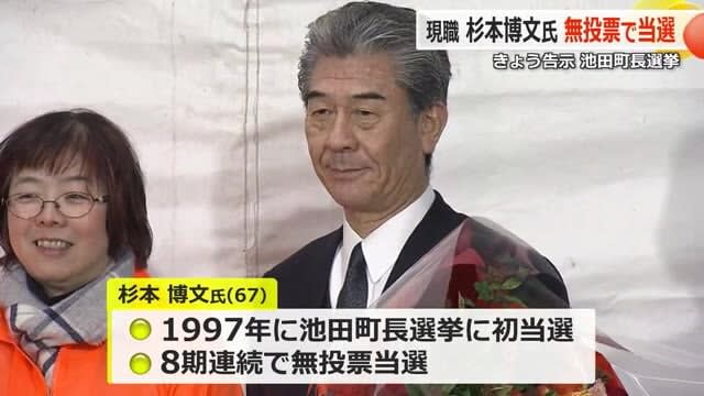 任期満了に伴う池田町長選挙が21日に告示され、現職の杉本博文氏以外に立候補の届け出はなく、杉本氏が無…